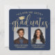 It's a double graduation party! Announce the achievement of two graduates and invite family and friends to celebrate with stylish joint graduation party square photo invitations. All pictures and wording are simple to personalise, and the colours can be customised using the Zazzle design tool. (IMAGE PLACEMENT TIP: An easy way to position a photo exactly how you want is to crop it before uploading to the Zazzle website.) This template is a combination announcement card on the front with the grad party invitation on the back. The modern navy blue and gold design features handwritten style script calligraphy with a mortar board cap, elegant classic typography, and 2 photos of your choice, such as senior pictures or images from the commencement ceremony. Please note that gold is printed colour, not metallic foil. This graduation invitation card is a stylish way to announce a special day celebration for any two grads, such as siblings, best friends, cousins, twins, brother and sister, etc. Congratulations to both of the graduates!
