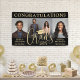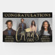 It's a double graduation party! Add a personalised touch to a joint graduation celebration honouring two graduates with a stylish three photo collage "Congratulations Grads" banner. The pictures and all wording on this template are simple to customise. It includes class year, graduate names, and any other custom text, such as school names, degrees, honours, etc. (IMAGE PLACEMENT TIP: An easy way to position a photo exactly how you want is to crop it before uploading to the Zazzle website.) The modern black and gold design features handwritten style script calligraphy, elegant classic typography, and three photos of your choice, such as senior pictures or images from the commencement ceremony. Please note that gold is printed colour, not metallic foil. This graduation sign is a stylish way to welcome guests to a special day celebration for any 2 grads, such as siblings, best friends, cousins, twins, brother and sister, etc. Congratulations to both of the graduates!