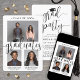 It's a double graduation party! Announce the achievement of two graduates and invite family and friends to celebrate with stylish joint graduation party custom photo invitations. The pictures and wording are simple to personalise, and the colours can be customised using the Zazzle design tool. (IMAGE PLACEMENT TIP: An easy way to position a photo exactly how you want is to crop it before uploading to the Zazzle website.) This template is a combination announcement card on the front with the grad party invitation on the back. The modern black and white design features handwritten style script calligraphy with a mortar board cap, elegant classic typography, and three photos of your choice, such as senior pictures or images from the commencement ceremony. This graduation invitation card is a stylish way to announce a special day celebration for any two grads, such as siblings, best friends, cousins, twins, brother and sister, etc. Congratulations to both of the graduates!