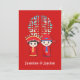 Specially designed for a Chinese wedding, this card features kawaii style couple in traditional Chinese costume. The backdrop features a carved window with the “Double Happiness” symbol overlooking a cherry blossom garden. The "Double Happiness" spelled xi or "hsi" in Mandarin and pronounced "shuang-xi" is a well-known Chinese character used traditionally in Chinese weddings as a symbol of love, happiness, and luck for the newly wedded couple. The use of the color red is an auspicious, as well as a popular color in Chinese culture, symbolizes luck, happiness, and joy. Personalize your wedding invitation details on the back of the card. A design truly fit for any Chinese wedding celebrations.