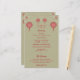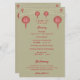 An original illustration of elegant and chic red double happiness lanterns in modern kanji / chinese writing hanging on strings of fairy lights, on a simple greenish moss grey/grey colour background wedding program.