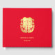 This elegant design features the auspicious Chinese symbol of "Double Happiness" coupled with Mandarin ducks in gold colour. The "Double Happiness" symbol spelled xi or "hsi" in Mandarin and pronounced "shuang-xi" is a well-known Chinese character used traditionally in Chinese wedding as a symbol of love, happiness, and luck for the newly wedded couple. Whilst the Mandarin ducks are a symbol of love and marriage. These love ducks represent the perfect marriage and everlasting love. With a complementary red backer and the use of contemporary fonts, this wedding guest book is a perfect accompaniment for any Chinese wedding celebrations.