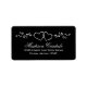 Black and White Double Intertwined Hearts Wedding Address Labels with two hearts and floral vine design. The background colour is black and the lettering and hearts are white.