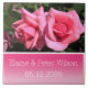 Double hot pink rose flowers wedding anniversary tile. add wife and husband names and wedding date. Love, romance and wedding.