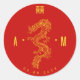 A set of matching red stickers tailored to your double happiness wedding invitations. They feature a gold dragon on top of a solid red backdrop. On both sides sits the monogram of the soon to be couple.
