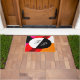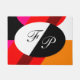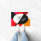 This brilliant doormat is made unique by an abstract minimalist decor, playing on the contrast of black, white and warm colours (dark red, red, orange, fuchsia). Nitid and blurred lines come together to create a symmetrical, elegant effect, while the oval shape in the centre reminds of a fusion between an egg and a Taijitu (the yin - yang representation), floating on a background of fiery, powerful warm bright colours.