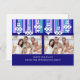 Happy holidays christmas custom double photo postcards in blue, purple, white and teal modern christmas snowflakes ,decorations, and stripes pattern, elegant and simple. Wish your family and friends all the best this holiday season with this fun postcard.