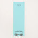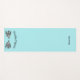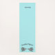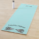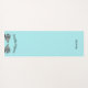 Robin's egg blue yoga mat with graphics of two grey and blue pigeons facing each other. Black arched text, above the birds reads, Double Pigeon (yoga pose). The other end of the mat has black custom text, personalise to suit your needs.
