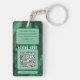 A green malachite stone keychain designed to make the QR codes aesthetically pleasing, without losing functionality. This keychain is two-sided, with a different QR field on each side, each with its own subtitle for clear labelling. Link to different websites, like one for wifi and another for a discount code; or just input the same link in both QR code fields (both sides of the keychain) for ease of use. There is also a place to add your logo on the front, and another for business contact information on the back.