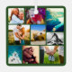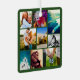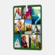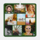 Green personalized 18 photo collage template rounded corners metal ornament. Great for Christmas.