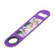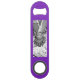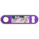 2 photo double sided personalised stainless keychain bottle opener bar blade with rounded a purple violet border.