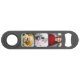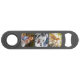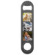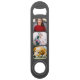6 Personalised photos keychain stainless bottle opener bar blade with rounded dark grey borders.