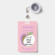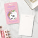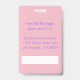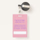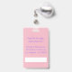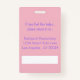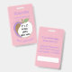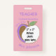 A pink , double-sided ID badge for teachers with an apple . ON THE FRONT : add the title (position : teacher , teacher aide , librarian , principal , etc) . Add the school name and the school year this badge will be valid . replace the image with a 2" x 2" photo of the school employee . Below the apple , add the name . Fill THE BACK with additional text that you need . The is also a white space provided for a signature or a bar code .