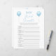 This double sided game card features word scramble on the front and bingo on the back, and is perfect for a baby shower or baby sprinkle. This word scramble bingo game features a blue watercolor balloon. You can personalise this design by clicking on "Personalise this template" or if you wish to change the font, colours or arrange the design elements in a different way you can click on "Edit using Design Tool". Answer Key: 1. Diaper 2. Bassinet 3. Bottle 4. Crib 5. Pacifier 6. Changing Table 7. Stuffed Animal 8. Stroller 9. Rubber Ducky 10. Blanket 11. Teether 12. Formula 13. High Chair 14. Mobile 15. Thermometer 16. Baby 17. Milk 18. Booties 19. One-sie 20. Teddy Bear