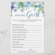 DOUBLE SIDED Blue Hydrangea Bridal Shower Game