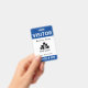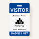 Double-sided vertical visitor badge with a simple design in blue and white. VISITOR is written in bold white letters against a blue background to be easily visible. Add your business name, logo, and branch. At the bottom, the badge number.