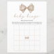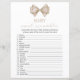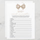This double sided game card features word scramble on the front and bingo on the back, and is perfect for a baby shower or baby sprinkle. This word scramble bingo game features a boho beige watercolor coquette bow on. Perfect for a gender neutral celebration. You can personalise this design by clicking on "Personalise this template" or if you wish to change the font, colours or arrange the design elements in a different way you can click on "Edit using Design Tool". Answer Key: 1. Diaper 2. Bassinet 3. Bottle 4. Crib 5. Pacifier 6. Changing Table 7. Stuffed Animal 8. Stroller 9. Rubber Ducky 10. Blanket 11. Teether 12. Formula 13. High Chair 14. Mobile 15. Thermometer 16. Baby 17. Milk 18. Booties 19. One-sie 20. Teddy Bear