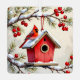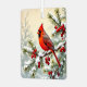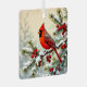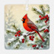 A beautiful double=sided Christmas ornament. Each side has a pretty illustration of cardinals. One on a bird house and the other on a pretty snow covered pine branch with red berries.