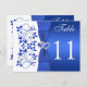 This romantic cobalt or royal blue and white floral double-sided table number post card has a blue PRINTED ribbon and bow with a pair of PRINTED diamond jewel and blue FAUX glitter joined hearts on it that matches the wedding invitation shown below. You must customise the card for EACH table number that you need, by changing the "11" to each number you need, adding it to your cart, and then repeating the process until you have the correct number of individual cards in your cart. If you have any questions, email niteowlstudio@gmail.com.
