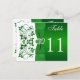 This romantic emerald green and white floral double-sided table number post card has a PRINTED satin look ribbon and bow with a pair of PRINTED diamond jewel and FAUX glitter joined hearts on it that matches the St. Patrick's Day wedding invitation shown below. You must customise the card for EACH table number that you need, by changing the "11" to each number you need, adding it to your cart, and then repeating the process until you have the correct number of individual cards in your cart. If you have any questions, email niteowlstudio@gmail.com.