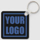 Fully customisable logo template double sided printed metal keychain on black.