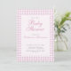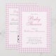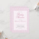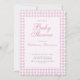 A cute and classy double sided baby shower invitation for a girl's party featuring a blush pink gingham with a scalloped edge. The front has the party information and the back has space to add details about the registry and other events at the party. Add your baby registry website to the QR code to create your own scannable invitation. Perfect for an elegant and useful baby shower to welcome your baby girl.