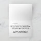 This card is great fun and good quality. I loved the humour inside and on the back. There is the opportunity to change the orientation of this card from landscape to portrait, which I did. It is relatively straightforward to amend the typeface to fit the new orientation. It was well packaged with no plastic. The printing on this card is excellent.