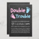 Double The Trouble Chalkboard Gender Reveal Invitation