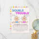 Celebrate the impending arrival of your "Double Trouble Twin Boy and Girl" with our charming baby shower design! Double the trouble, double the fun - this adorable theme is perfect for twins on the way. Decked out in shades of pin and blue, this funny and whimsical design is ideal for parents-to-be expecting multiples. Whether you're hosting a baby shower for twins, our "Double Trouble Twin Boy and Girl" theme is sure to bring smiles and laughter to all your guests. Get ready to double the love and double the joy with this playful and cute baby shower theme!