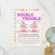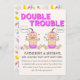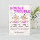 Celebrate the impending arrival of your "Double Trouble Twin Girls" with our charming baby shower design! Double the trouble, double the fun - this adorable theme is perfect for twin girls on the way. Decked out in shades of pink, this funny and whimsical design is ideal for parents-to-be expecting multiples. Whether you're hosting a baby shower for twin girls or twins in general, our "Double Trouble Twin Girls" theme is sure to bring smiles and laughter to all your guests. Get ready to double the love and double the joy with this playful and cute baby shower theme!