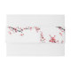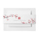 A wedding invitation belly band featuring falling red leaves/flowers with a double xi character.