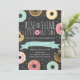 ♥ A perfect way to invite your guests to your little one's birthday party! Doughnut theme, rise and shine on a chalkboard background.