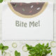 Doughnut Bite Me! Funny play on words with a cute doughnut with chocolate glaze and sprinkles