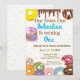 Celebrate your little one's first birthday with this adorable doughnut-themed invitation, featuring colourful sprinkles and sweet doughnut graphics. This invitation can be used for any age.