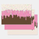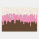 Doughnut frosting dripping with coloured Sprinkles in chocolate brown frosting, strawberry pink frosting, and vanilla cream frosting Wrapping Paper Sheets