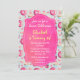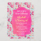 A sweet and delicious birthday party invitation for girls of all ages. The pattern background is a yummy illustration with glazed pink doughnuts with sprinkles. Mouth watering cupcakes in pink and blue with rosettes and strawberries on top. Some pastel pink french pastry macarons and little pink candy buttons also decorate this pattern full of sweet treats. A hot pink fancy frame in the centre has all your party details in easy legible writing. Personalise with all your party details.