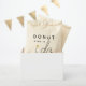"Doughnut Mind If I Do" wedding doughnut favour bags with customisable text. The design features a mix of calligraphy and modern typography with a cute little gold heart. Personalise the design by replacing the names, year and wedding hashtag.