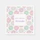 Paper napkins with a deliciously fun pattern. Illustration of pastel pink and green doughnuts with sprinkles and icing.