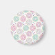 Magnet with a deliciously fun pattern. Illustration of pastel pink and green doughnuts with sprinkles and icing.