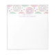 A notepad with a deliciously fun pattern. Illustration of pastel pink and green doughnuts with sprinkles and icing.