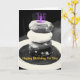 Black and white photograph of a stack of doughnuts with a goofy poem of birthday wishes.