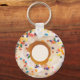 Doughnut theme key holders with colourful sprinkles on a white glazed doughnut. Designed to hold your house keys, car keys, or use as an inexpensive party favour.