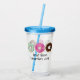 Whimsical drinking acrylic tumbler, with colourful graphics of doughnuts. Black text reads doughnut touch, with personalised name.