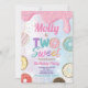 Doughnut Two Sweet 2nd Birthday Party Pink Pastel Invitation
