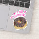 Cute and funny laptop sticker with a photo of a chocolate covered doughnut topped with colourful candy sprinkles. Text is an inspirational yet fun message in a bright, colourful pink, "The day is full of possibilities." Contact us to request matching products.