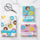 This fun wrapping paper sheets feature a pattern of colourful doughnuts with pastel-coloured icing and sprinkles. The word pun in the middle reads "doughnut worry, be happy!".
