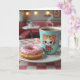 Say hi to a friend or family member with this sweet card. Front features a strawberry doughnut with sprinkles and a cute cup of coffee with a Kawaii cat on a table at a diner. Inside the card is a cute pun that says, "Doughnut worry, be happy."
