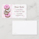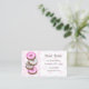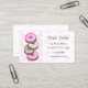 Stack of doughnuts with sprinkles, chocolate and pink frosting on pink and white polka dot background.. Great business card for bakeries, doughnut shops, bakers, or coffee shops.
