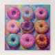 A modern abstract painting of doughnuts, bursting with bright pastel colours including pink, yellow and aqua. The playful composition features textured brushstrokes and whimsical shapes, creating a lively and deliciously artistic interpretation of everyone's favourite sweet treat. This vibrant piece adds a fun, contemporary flair to any space.