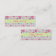 Skinny business cards to get your message out there. A yummy business website card with a delicious pattern design. Glazed pink doughnuts with sprinkles. Mouth watering cupcakes in pink and blue with rosettes and strawberries on top. Some pastel pink french pastry macarons and little pink candy buttons also decorate this pattern full of sweet treats. Set on a pale pastel background. A yellow stripe with a green border stretches across the centre where you can enter your text with easy legible writing.
